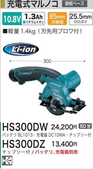 DIY女子も必見[税込新品]マキタ 10.8V充電式マルノコHS300DW バッテリ・充電器・チップソ付 丸鋸/丸ノコ/マルノコ...