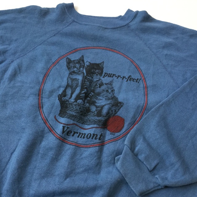 VERMONT 猫スウェット アメリカ直輸入 トレーナー 送料無料 メンズ XL/ブルーグレー系 cat 子猫 毛糸 アメカジ ラ...