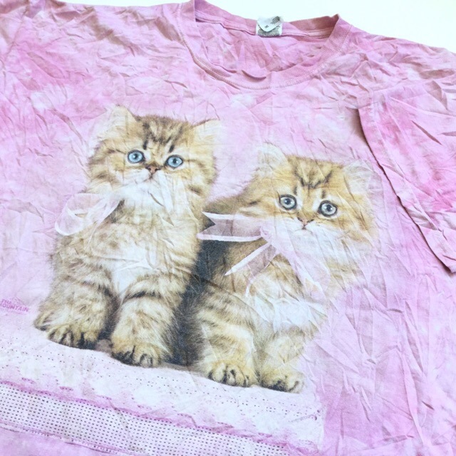 THE MOUNTAIN レディース タイダイTシャツ 半袖Tシャツ 送料無料 3XL/タイダイxピンク系 猫 リボン USA 輸...
