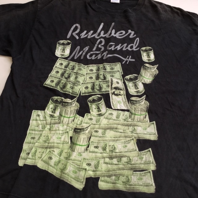 Rubber Band Man アメリカ古着 半袖Tシャツ ドルTシャツ 送料無料 メンズ 2XL/黒・ブラック 米ドル 100ド...