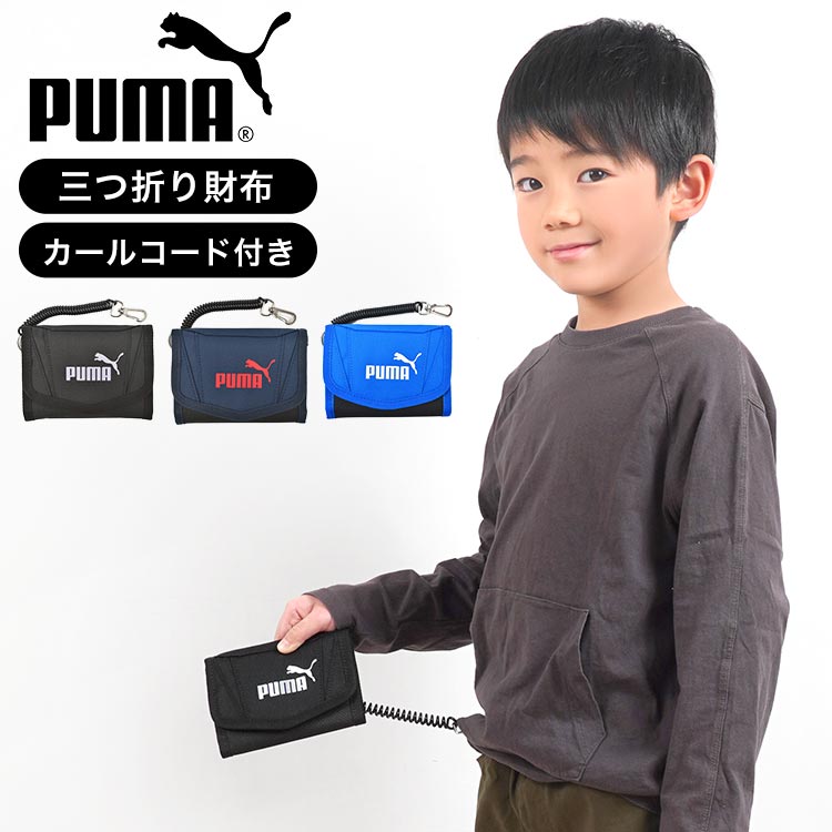 財布 PUMA プーマ 男の子 キッズ 小学生 中学生 ジュニア サイフ 三つ折り カールコード ストラップ付き パスケース 定期...