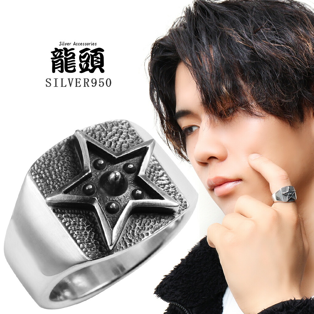 龍頭 霰 星 印台 リング 指輪 10~28号 指輪 メンズ シルバー シルバーリング メンズリング 印台リング シグネットリング...