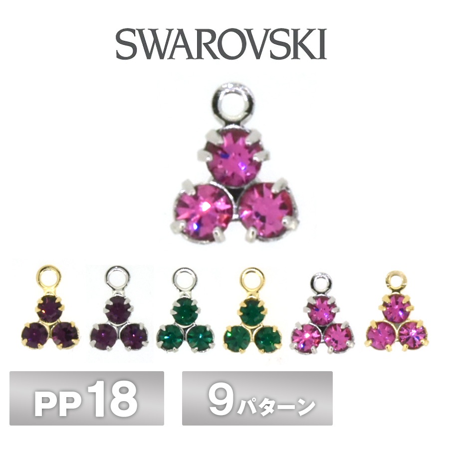 スワロフスキー 石付 石座 カン付 3石 全9色 2個 PP18 SWAROVSKI パーツ アクセサリー ハンドメイド 手芸 手...