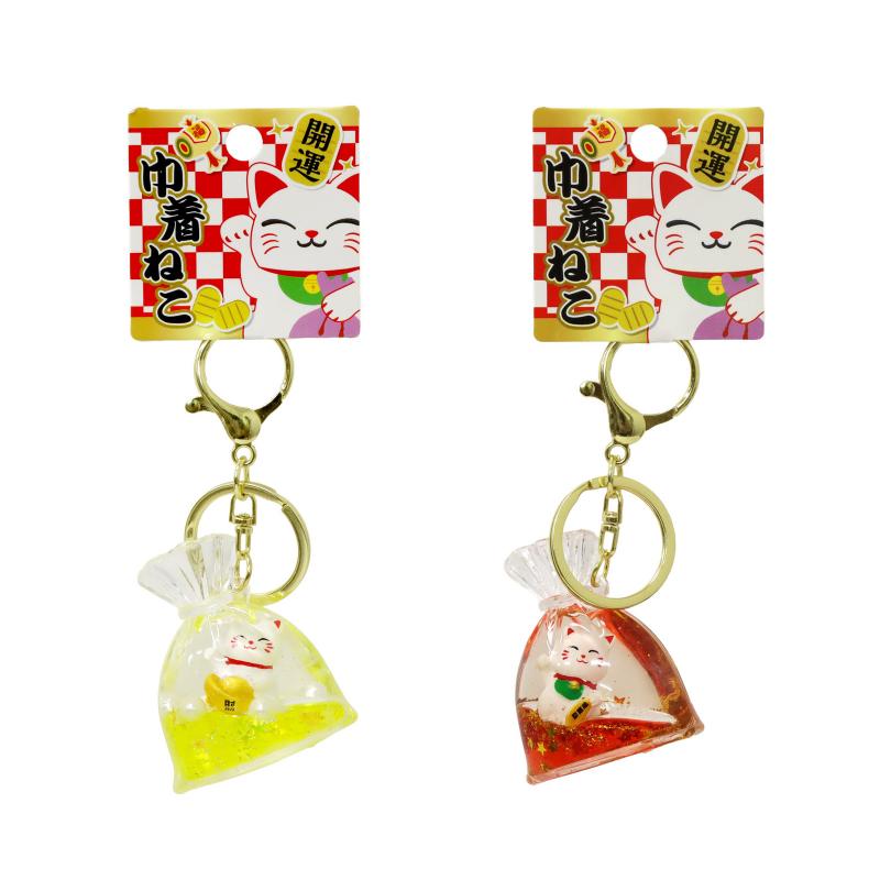 開運の巾着猫 キーホルダー 2色アソート No.603-301