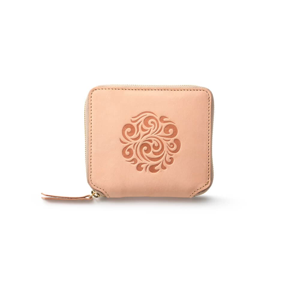 ショートウォレット/革財布 アラベスク エンボス ナチュラル サドルレザー