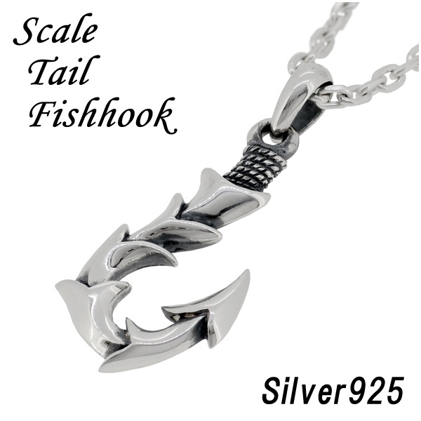 スケイル フィッシュフック シルバー ネックレス チェーン付きペンダントトップ シルバーアクセサリー メンズ 男性用 シルバー92...