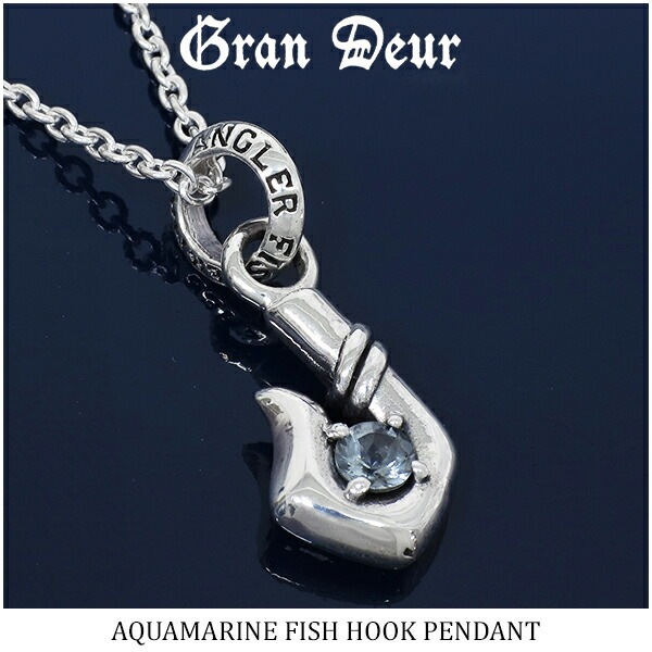 GRAN DEUR アクアマリン フック シルバーネックレス チェーン付きペンダントトップ 釣針 釣り針 マリン 海 フィッシュフ...