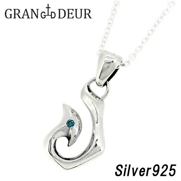 GRAN DEUR 釣り針 ブルーダイヤモンド シルバー ネックレス シルバーアクセサリー メンズ 男性用 シルバー925 海 天...