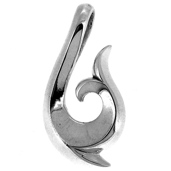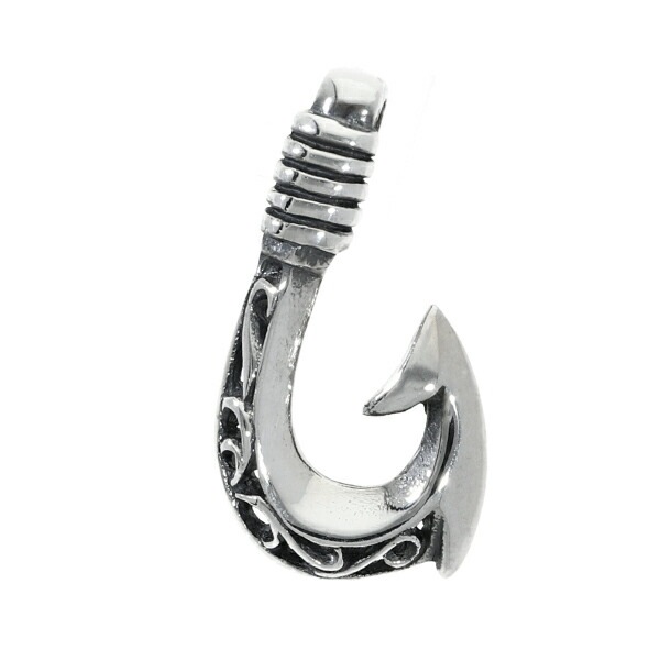 フィッシュ フック シルバー ペンダントトップ チェーンなし ハワイアンジュエリー 釣り針 トライバル スクロール ペンダント ネ...