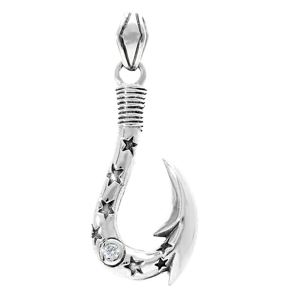 スター フィッシュフック シルバー ペンダントトップ チェーンなし 星 フック 釣り針 ジルコニア ペンダント ネックレス トップ...