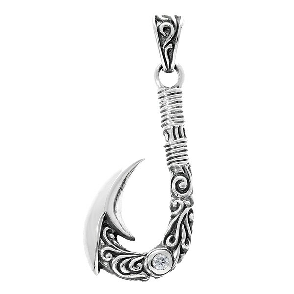 アラベスク フィッシュフック シルバー ペンダントトップ チェーンなし 唐草 フック 釣り針 ジルコニア ペンダント ネックレス ...