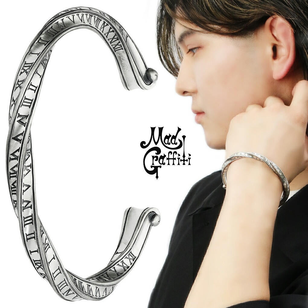 Mad Graffiti マッドグラフィティ アブソリュート ツイスト M バングル ブラック シルバー ブレスレット ローマ数字...
