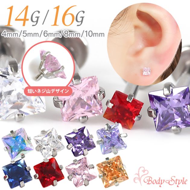 【クリスマス限定カラー入荷!】ボディピアス 16g 14g ラブレットスタッド 四角 スクエア 立爪 ジュエル トラガス 軟骨ピア...