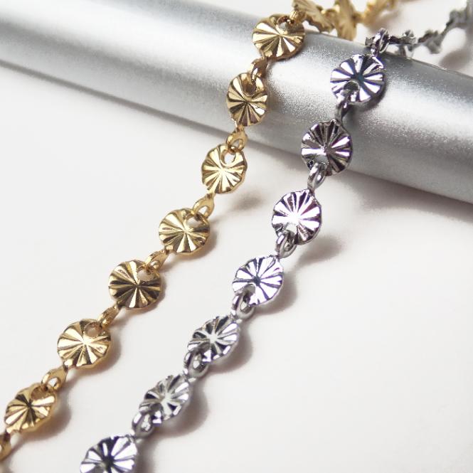 【SUS304 ステンレス製】切り売り サンバーストコイン連結チェーン 金属アレルギー対応 変色しにくい