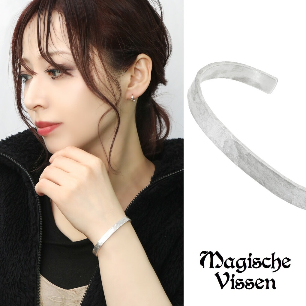 テクスチャ バングル 白仕上げ シルバー 925 腕輪 槌目 槌目模様 ハンマー 模様 大人 かっこいい レディースバングル ブレ...
