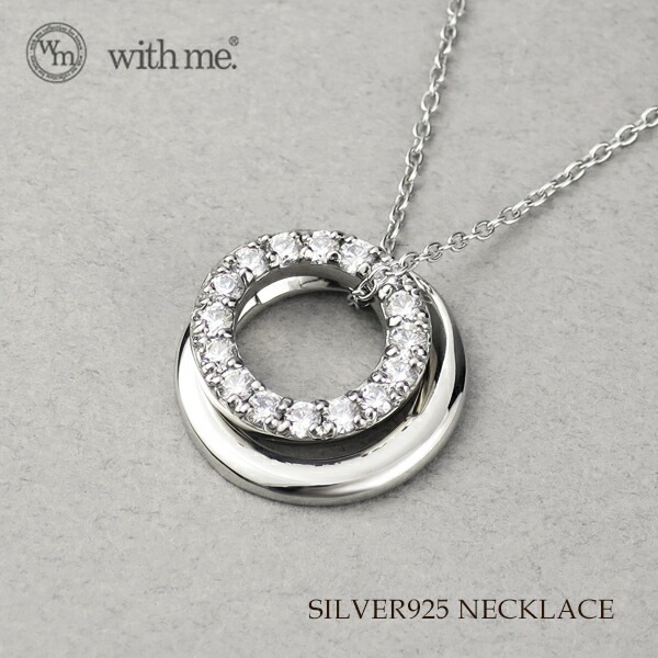with me ラインストーン ダブル サークル ネックレス シルバー925 銀 キュービックジルコニア ラウンド 円 丸 2重 ...