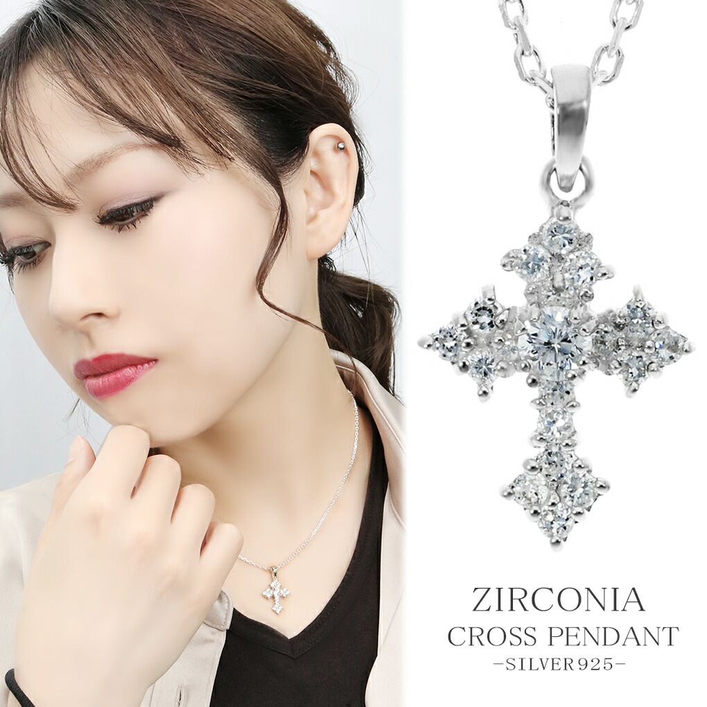 クロス ジルコニア シルバー ネックレス レディース シンプル 十字架 レディースネックレス シルバーネックレス シルバー925 ...