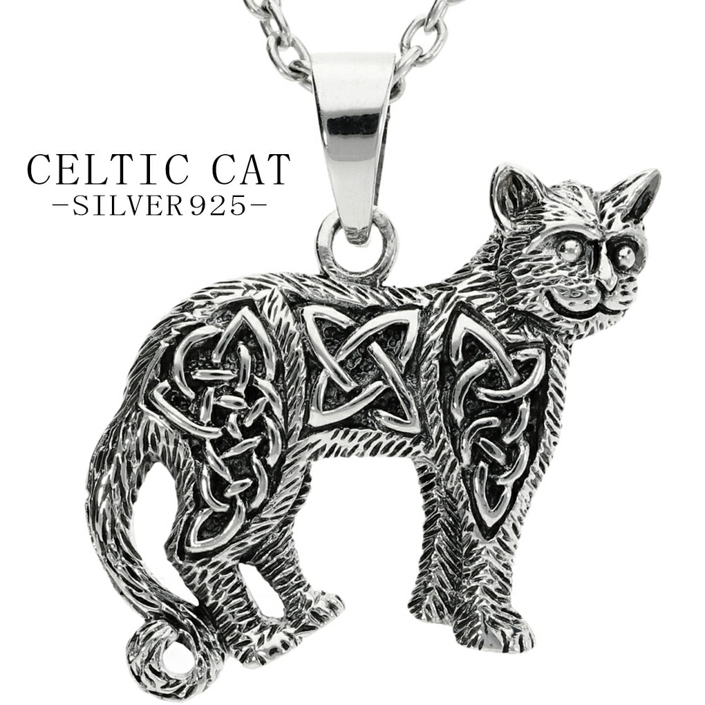 ケルティック キャット シルバー ペンダント ネックレス ペンダントトップ ネコ 猫 ねこ ケルト 模様 グッズ 動物 アクセサリ...