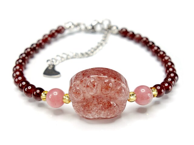 上質ストロベリークォーツ猫の手可愛いブレスレット天然石石街