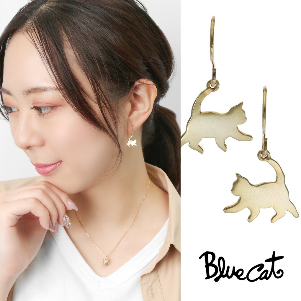 Blue Cat 猫 シルエット 揺れる ピアス 2P 両耳用 フックピアス ゴールド シルバー925 ねこ ネコ キャット 猫好...