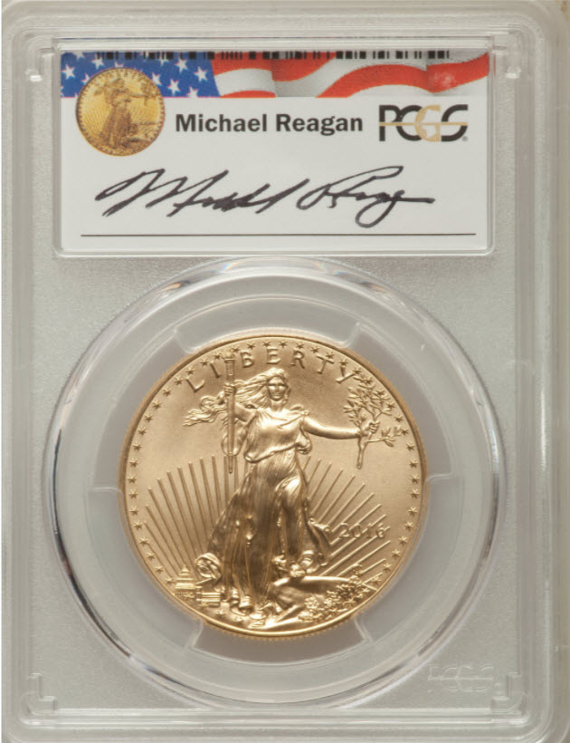 【動画あり】30周年記念 50ドル金貨 ゴールドイーグル 2016 $50PCGS MS70 マイケルレーガン サイン入り