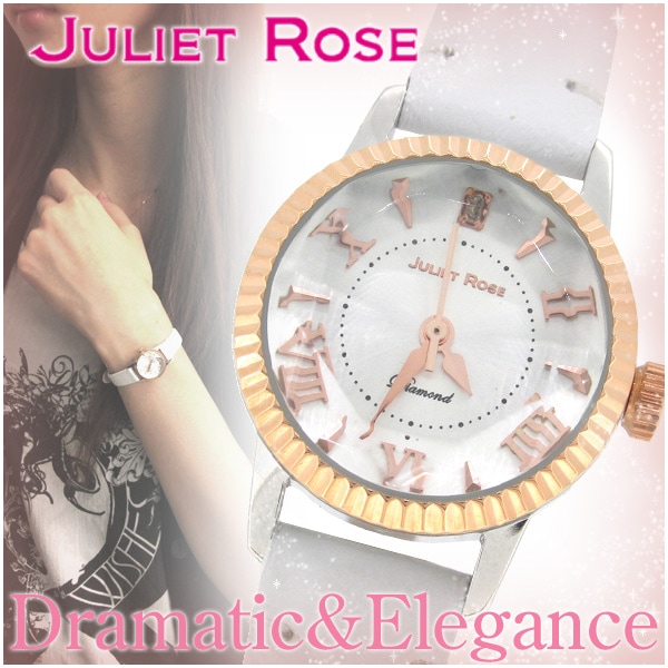 JULIET ROSE JUL108レザー シリーズ ホワイト ピンクゴールド レディースウォッチ レザー 革ベルト ダイヤ 日常...