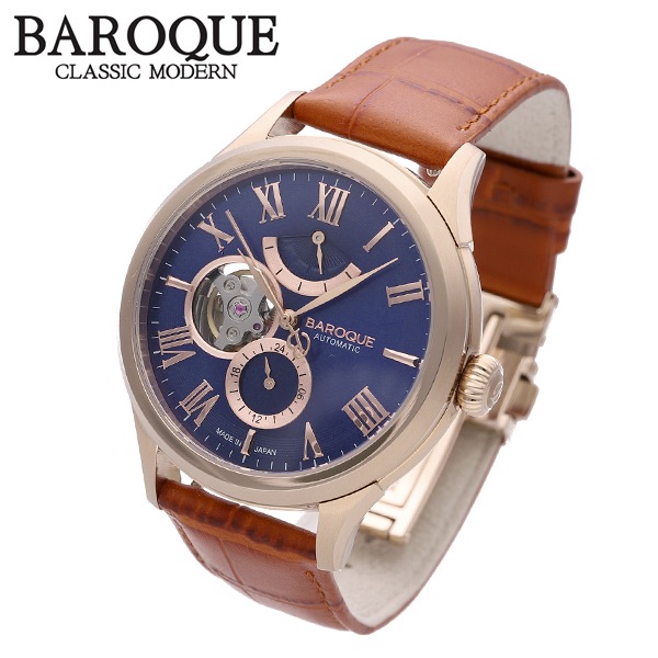 BAROQUE 腕時計 BA2007 ターコイズブルー ネイビー 日本製 時計 ウォッチ 紳士 ビジネス 自動巻き 機械式 文字盤...