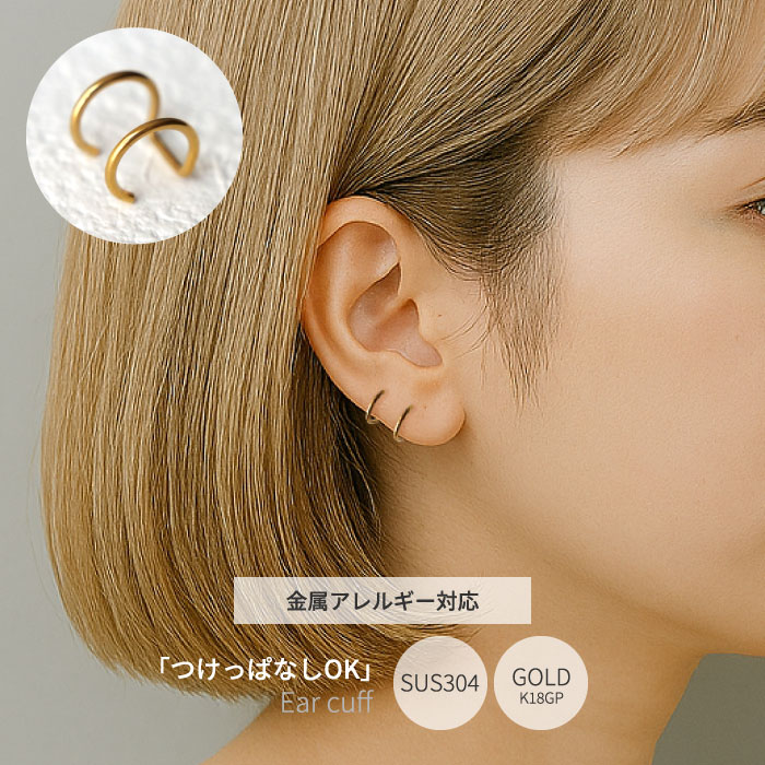 【SUS304ステンレス製】イヤーカフ ペア売り 2連デザイン 金属アレルギー対応