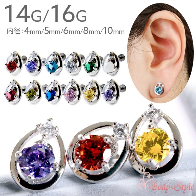 馬蹄 軟骨ピアス ボディピアス 16g 14g ラブレットスタッド 誕生石カラー ジュエル 立爪 トラガス 軟骨ピアス サージカ...