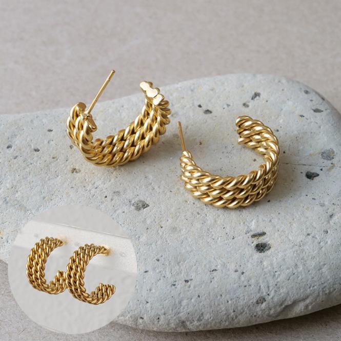 金属アレルギー対応 ステンレス ピアス 159. 三連ロープ フープピアス スタッド ゴールド 【メール便送料無料】