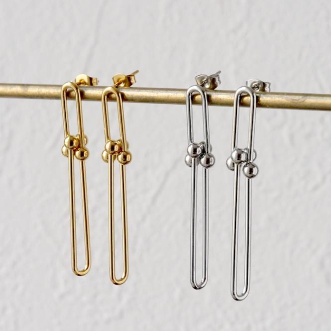 金属アレルギー対応 ステンレスピアス 【166. ダガー フープ ピアス】 ゴールド キャッチレス メール便送料無料 国内発送