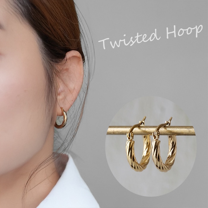 金属アレルギー対応 【232. ツイスト フープピアス 1ペア】 ステンレス ピアス ポスト クール シンプル 【メール便送料無...