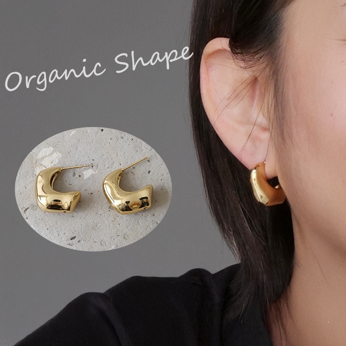 金属アレルギー対応 【245. ニュアンス シェイプピアス 1ペア】ステンレス ピアス 変形 シンプル ゴールド 【メール便送料...