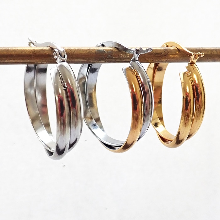 金属アレルギー対応 ステンレス ピアス 153. フープピアス 2連 キャッチレス 【メール便送料無料】