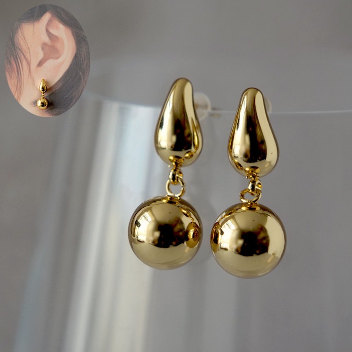 金属アレルギー対応【199. ドロップ ボール ゆれるピアス 1ペア】 ゴールド シンプル ステンレス ピアス ポスト