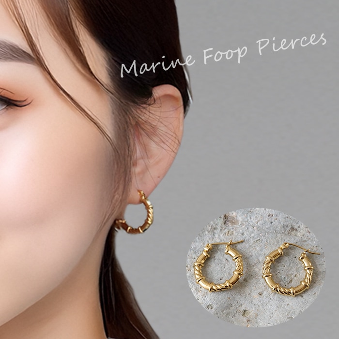 金属アレルギー対応 【240. マリンテイスト フープピアス 1ペア】ステンレス ピアス ナチュラル シンプル ゴールド 【メー...