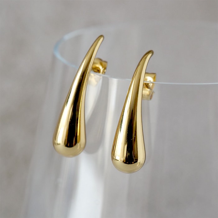 金属アレルギー対応 【197. 縦長ドロップ スタッドピアス 1ペア】 ステンレス ピアス ポスト ゴールド シンプル 【メール便...