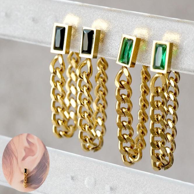 金属アレルギー対応 【190. ストーン付 チェーンフープ ピアス 1ペア】 ステンレス ピアス ポストゴールド シンプル 【メー...
