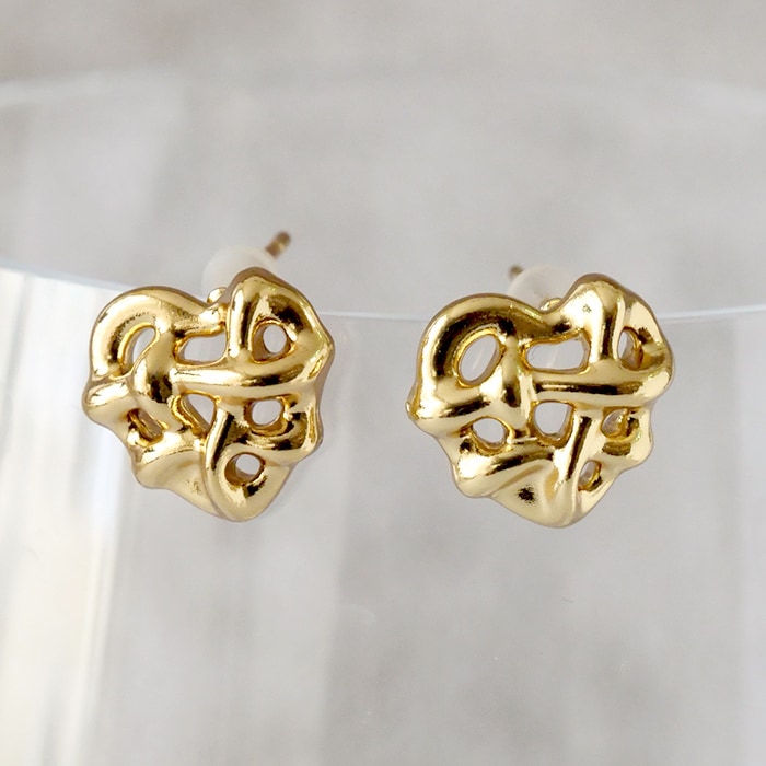 金属アレルギー対応 【225. ニュアンス ハート メッシュ スタッドピアス 1ペア】 ステンレス ピアス ポストY2K 変形 ゴ...