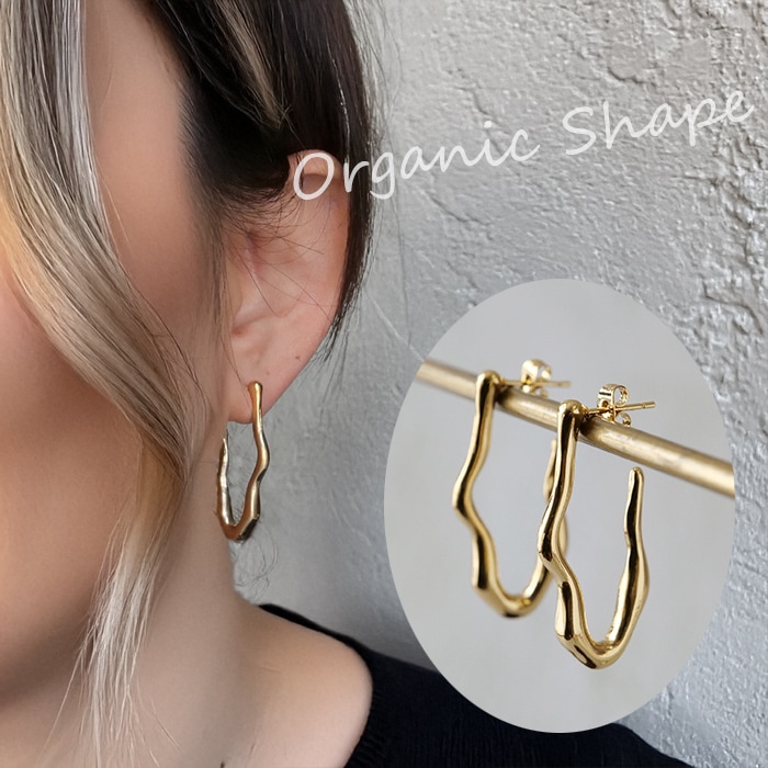 金属アレルギー対応 【236. ニュアンス ロング オーバル フープピアス 1ペア】 ステンレス ピアス ポスト変形 オーガニック...