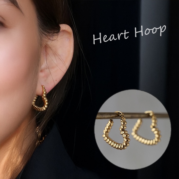 金属アレルギー対応 【242. スパイラルハート フープピアス 1ペア】ステンレス ピアス かわいい シンプル ゴールド 【メー...