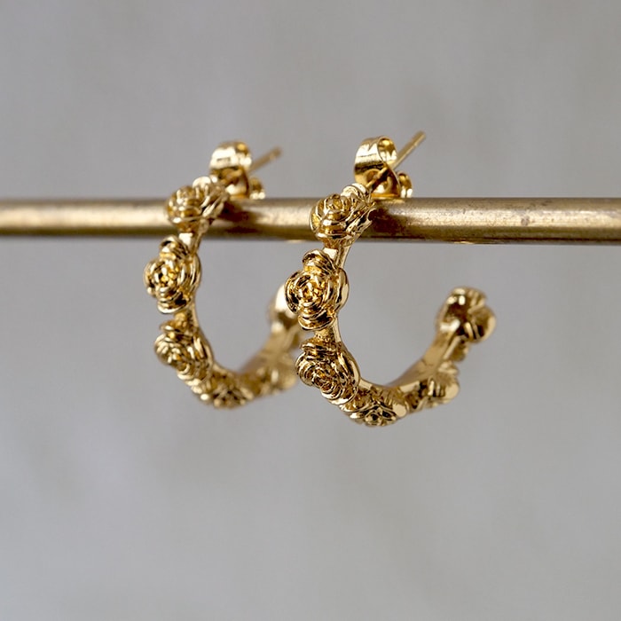 金属アレルギー対応 【250. 薔薇デザイン フープピアス 1ペア】 ステンレス ピアス ゴールド バラモチーフ 華やか 【メール...
