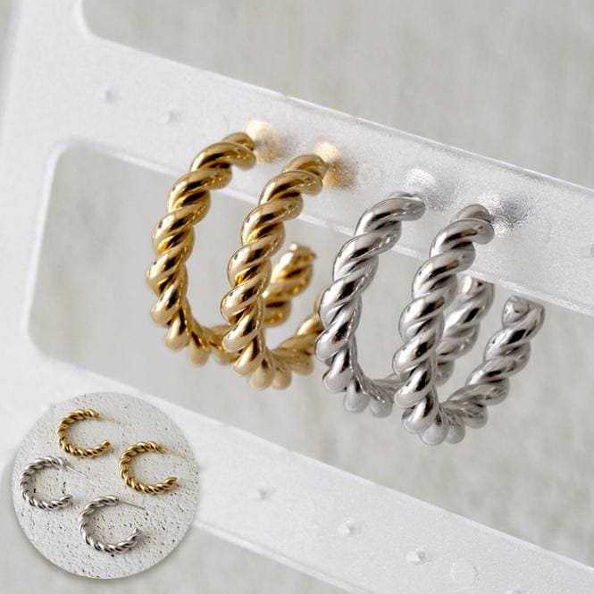 金属アレルギー対応! ステンレスピアス 【180.ロープ風デザイン フープピアス 1ペア】 ゴールド シルバー スタッド シンプル...