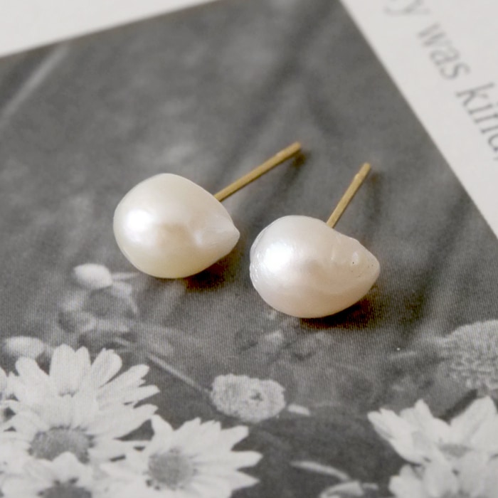 65. 淡水 パール バロックパール ピアス ステンレスポスト 7mm-9mm【日本製】ホワイト 金属アレルギー対応 【メール便送...