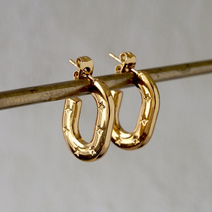 金属アレルギー対応 【249. 星柄 C型 オーバル フープピアス 1ペア】 ステンレス ピアス 星モチーフ つけっぱなしOK 【...