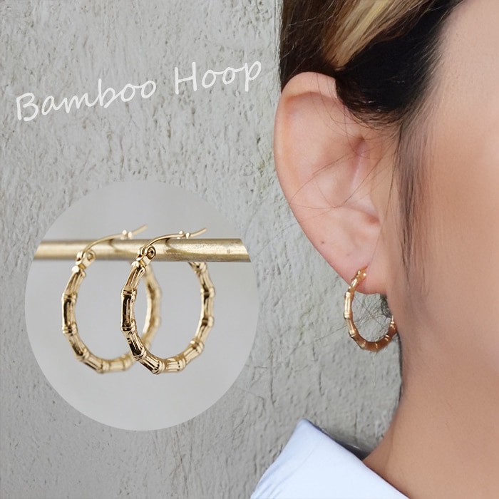金属アレルギー対応 【238. バンブー フープピアス 23mm 1ペア】 ステンレス ピアス ポストナチュラル 高見え シンプル...