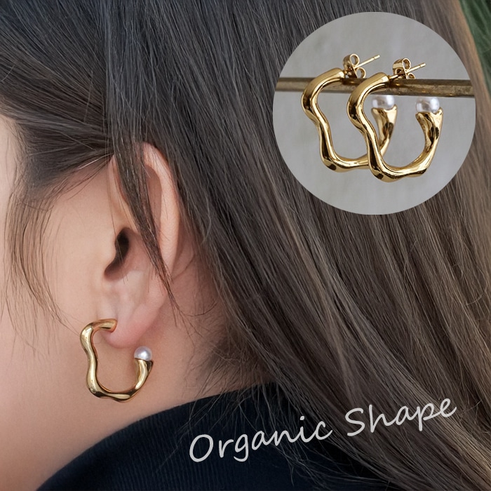 金属アレルギー対応 【243. パール付 ニュアンス フープピアス 1ペア】ステンレス ピアス シンプル ゴールド 【メール便送...