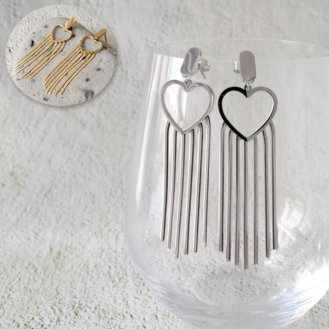 金属アレルギー対応! ステンレスピアス 【182.フリンジデザイン オープンハート 1ペア】 ゴールド シルバー スタッド【メール...