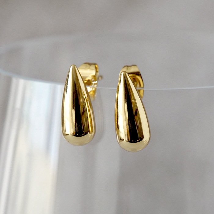 金属アレルギー対応 【193. ぷちっとドロップ スタッドピアス 1ペア】 ステンレス ピアス ポスト ゴールド シンプル 【メー...