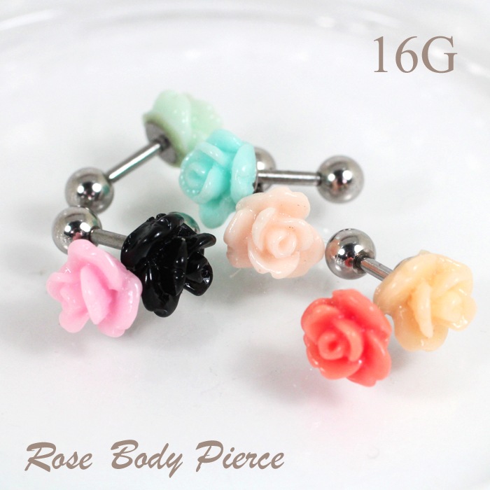 ボディピアス 16g バーベル ローズ バラ 薔薇 花 軟骨 ヘリックス t03-14